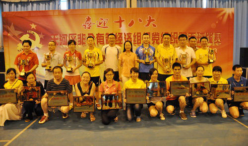 10月28日,由天河區(qū)非公有制經(jīng)濟組織黨工委舉辦的“喜迎十八大”羽毛球比賽在賽馬場偉盛羽毛球館舉行。我司由王永強、李運喜、謝蕓宇、曹乙香、劉鵬、鄒信祥組成的羽毛球代表隊獲得優(yōu)秀組織獎。