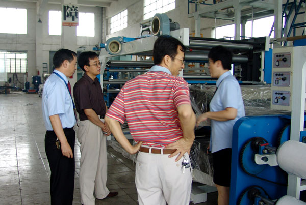 杜黨勇書記一行在公司黨支部書記、副總經理王聲躍、副總經理陳蓓的陪同下參觀了公司廠容廠貌和生產車間,在參觀過程中,杜書記不時詳細詢問公司的生產經營情況,并仔細了解各類機器的性能特點,當來到公司深入學習實踐科學發展觀活動的宣傳欄時,杜書記不禁駐足認真欣賞起來,連說:很好,辦的不錯。