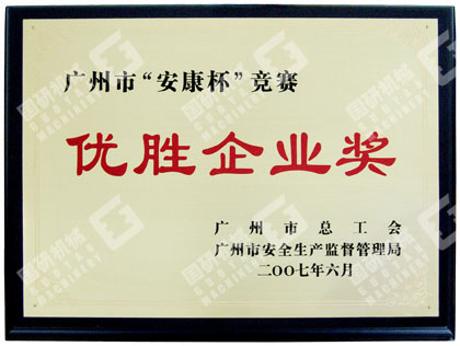 近日,廣州市總工會、廣州市安全生產(chǎn)監(jiān)督管理局為在全國總工會和國家安全生產(chǎn)監(jiān)督管理局組織開展的以“掌握安全生產(chǎn)知識,爭做遵章守紀職工”為主題的“安康杯”競賽活動中成績顯著的47家企業(yè)進行了表彰,廣州市國研機械設(shè)備制造有限公司榮獲“全國安康杯競賽廣州市優(yōu)勝企業(yè)”榮譽稱號。